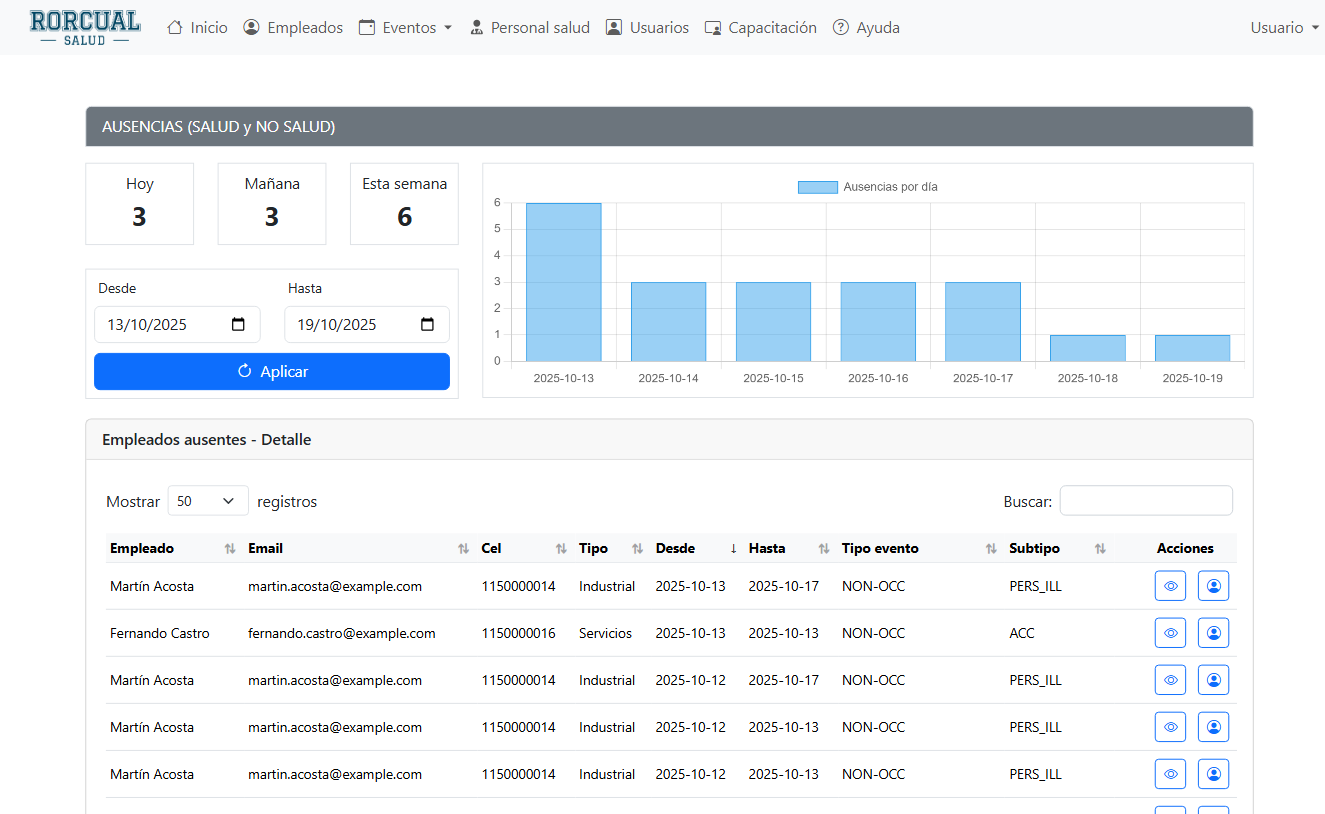 - Seguimiento de ausentismo por motivos médicos.