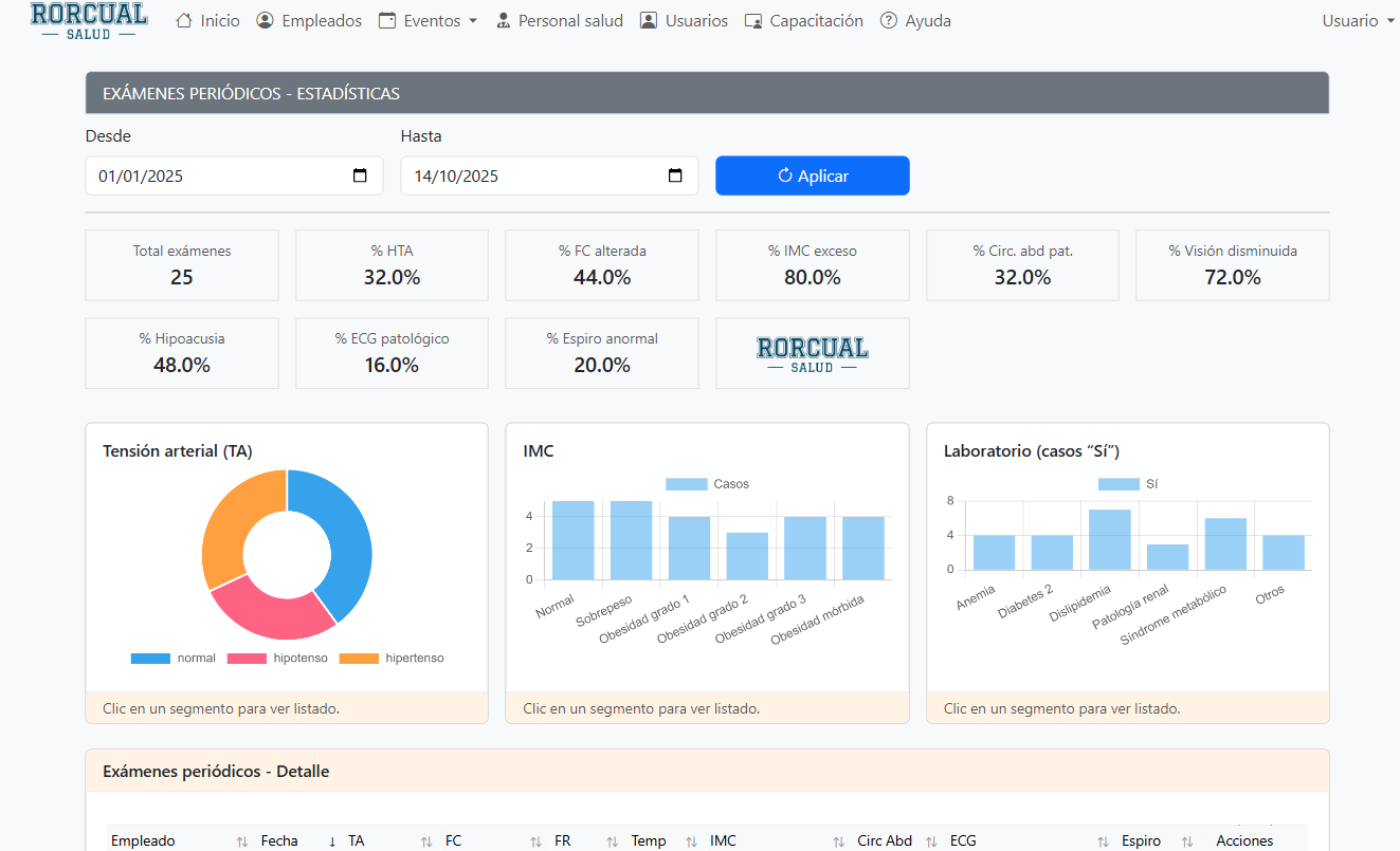- Gestiona exámenes de ingreso y egreso del personal.